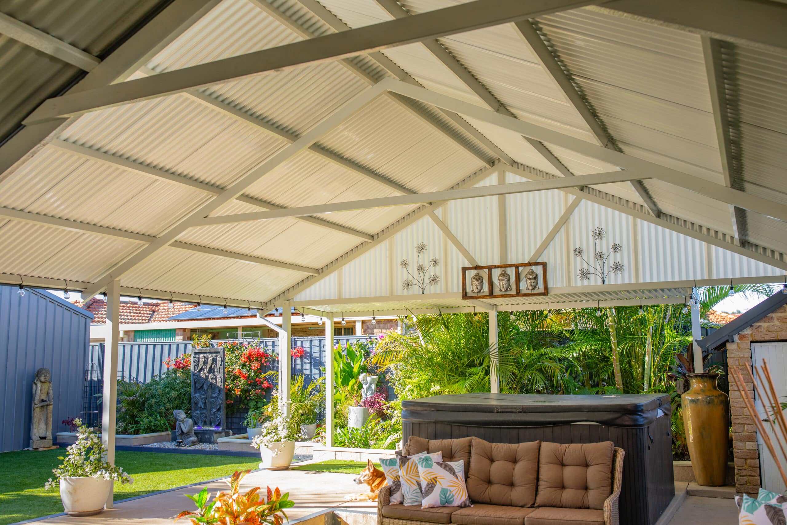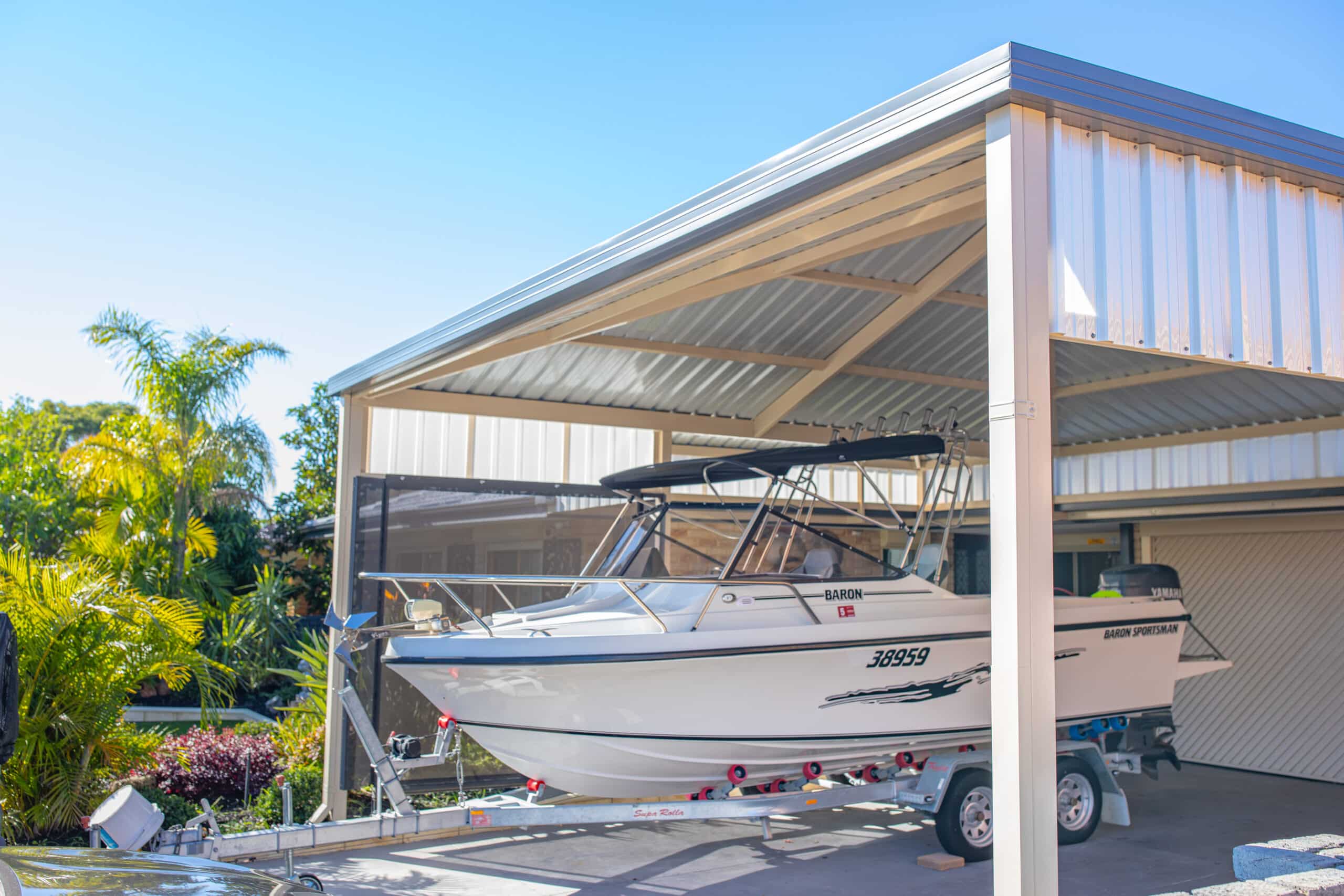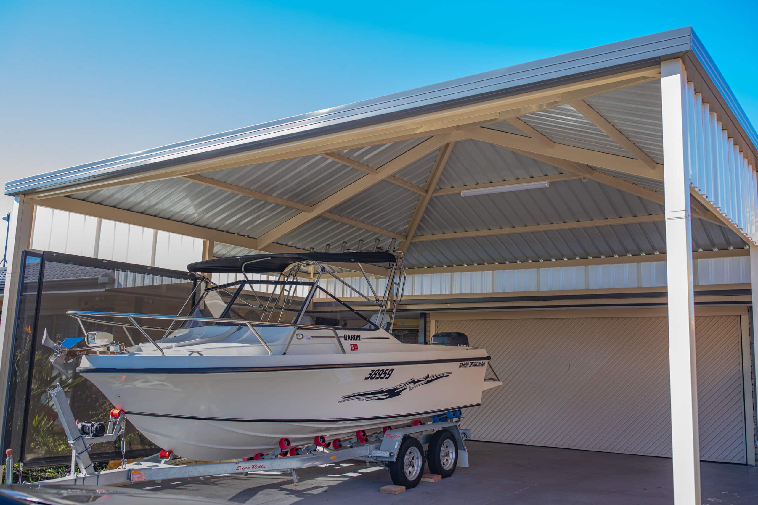 Our Gable Roofs are constructed of Australian-made BlueScope® Steel! It’s the strongest stuff on Earth! Well, mostly. For our purposes and yours, it may as well be. Blue Scope® Cyclone Rated Steel is it! Once it’s installed, it’s not going anywhere.